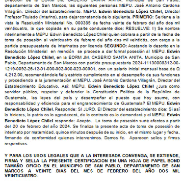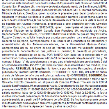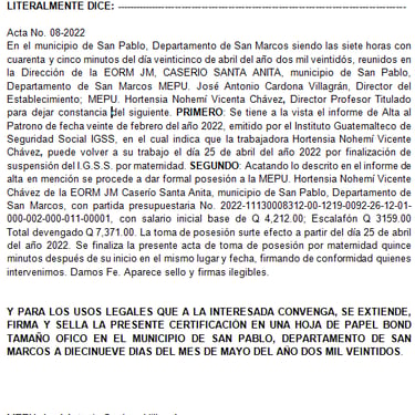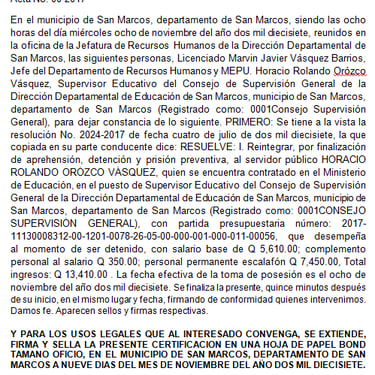 Modelo de Actas, Registro de acciones o movimientos de personal y liquidación de nómina Mensual adicional