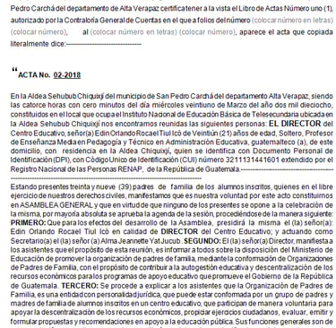Se levanta un acta de constitución en el libro de actas previamente autorizado por la Dirección Departamental, con páginas foliadas y selladas.