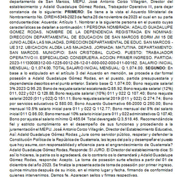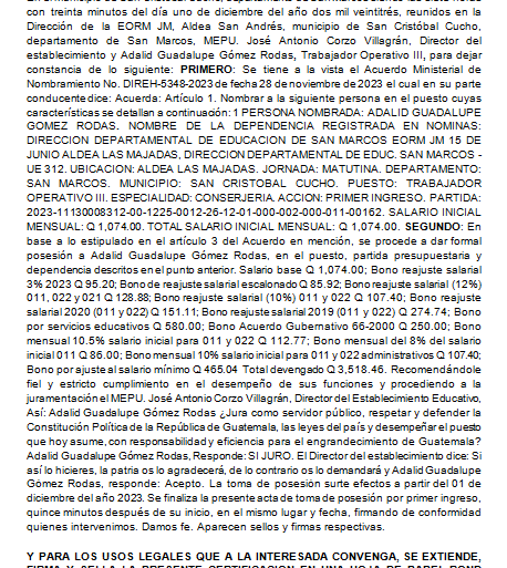 Acuerdo de Nombramiento para el personal contratado bajo el renglón